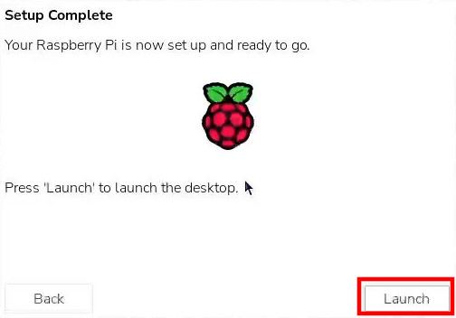 完了したら「Next」をクリックします。ユーザー名piを使用した場合は確認が出るのでOKをクリックします。